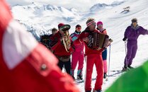 Get your spaghetti skis and race boards out of the cellar - we're celebrating the good old 80s together. Throw on the brightly coloured one-piece suits, put on the legendary SKA CS caps and get in shape with us for an extraordinary day of skiing including a parade run.