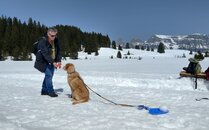 Inmitten der zauberhaften Winterlandschaft der Madils-Hochebene können Hund, Herrchen und Frauchen an acht bis zehn Plauschposten rutschen, herumrennen, tüfteln und rätseln.
